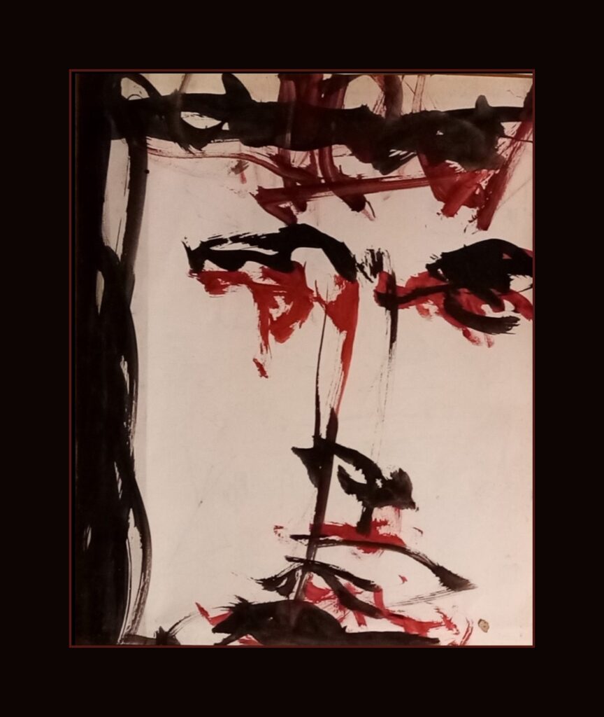 Il ritratto cristico trasuda un’atmosfera di profonda intensità esistenziale, evocando simbolicamente la drammaticità del Venerdì Santo. Oltre alla mera ricostruzione degli eventi storici, questo dipinto abbraccia con consapevolezza la passione umana, rappresentando l’uomo che, attraverso il perdono, supera il dolore per raggiungere la salvezza eterna. La tela diviene un mezzo attraverso cui si manifesta la tensione spirituale dell’anima umana, esplorando il conflitto tra sofferenza terrena e speranza divina. La figura ritratta, con lo sguardo rivolto oltre il dolore, incarna la ricerca di un significato più profondo e trascendente.