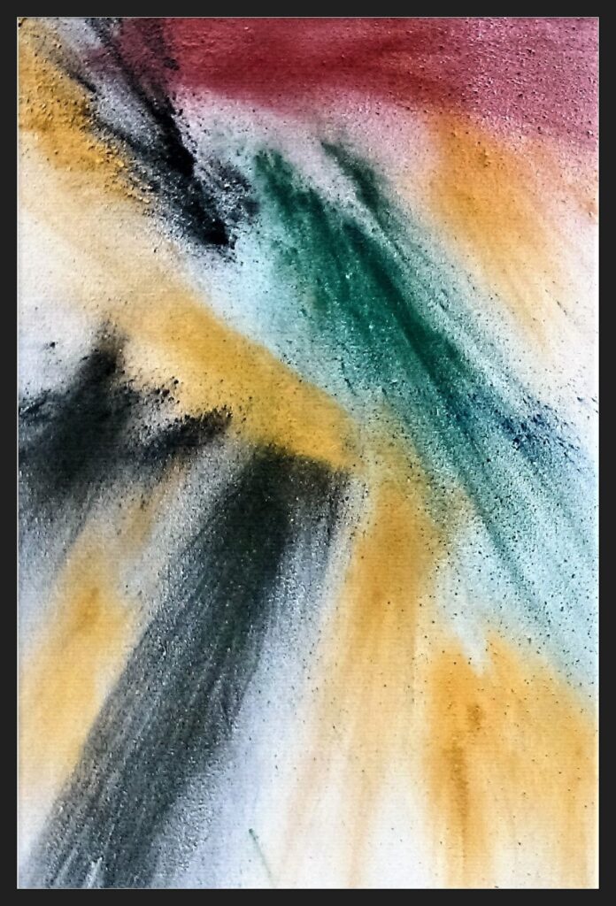 Questa arte di Sacra-Follia, evoca echi di campi lontani, connessi da un flusso vibratorio e sonoro dentro di noi. Il collage celebra le diversità umane unite in un’armonia spirituale. Ogni frammento contribuisce a un’immagine di pace e unità, trasmettendo una sensazione di trascendenza.